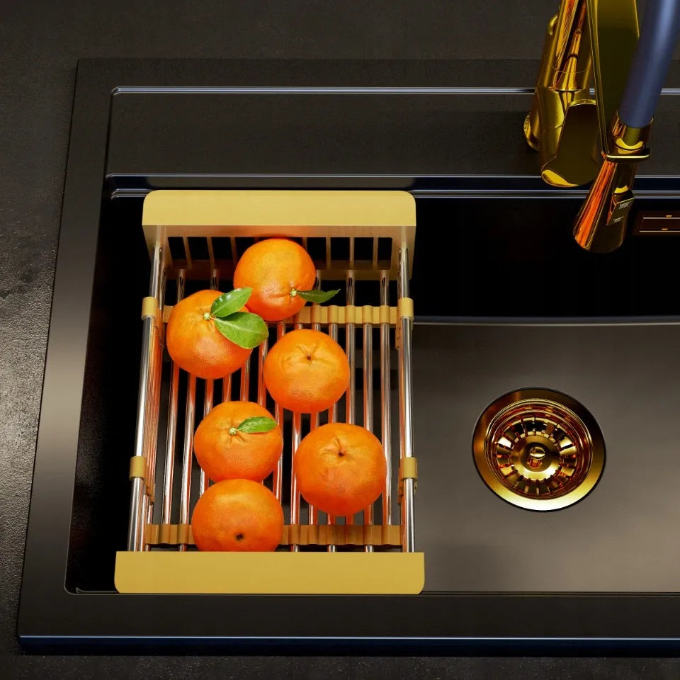 The telescopic basket is an invaluable addition to a modern kitchen, combining practicality and aesthetic design. Its telescopic design allows it to be adapted to various applications. It is perfect as a dish drainer, allowing you to direct the water directly to the sink, which speeds up the drying process of the dishes.