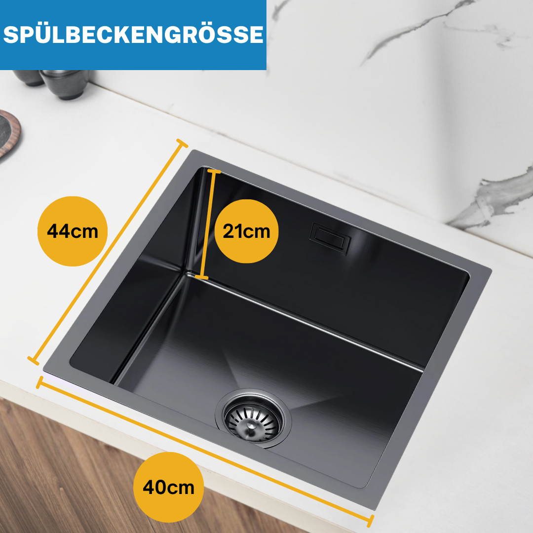 - Maße Spüle: 400 mm x 440 mm x 210 mm