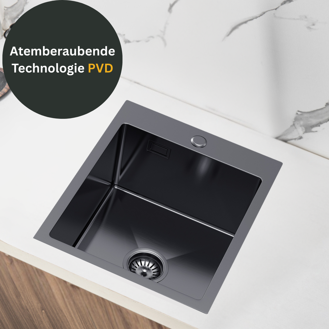 - Umweltschutz: Das PVD-Verfahren ist im Vergleich zu herkömmlichen Galvanisierungsverfahren weniger umweltschädlich, da es keinen giftigen Abfall erzeugt. Mit dem Kauf einer PVD-beschichteten Spüle unterstützen Sie nachhaltigere Herstellungsverfahren.