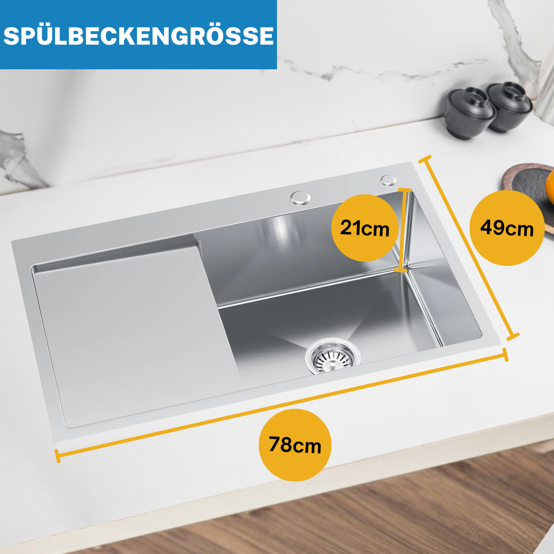 Stahlspüle 78x49 mit Abtropffläche – Perfekt für moderne Küchen