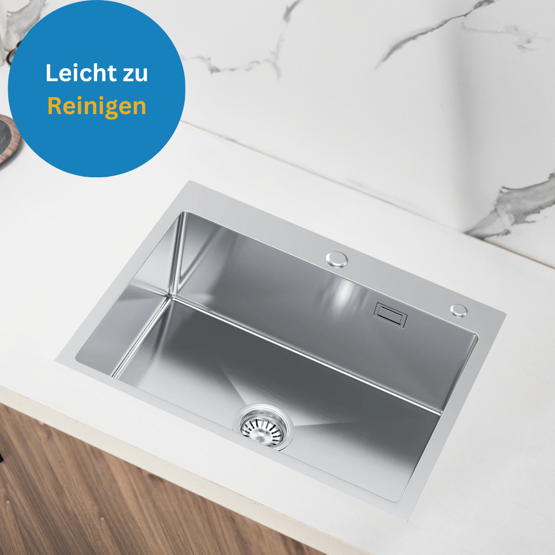 - Leicht zu reinigen: Der Küchenalltag wird durch die einfache Reinigung der Spüle noch angenehmer. Die glatte Oberfläche des Edelstahls ermöglicht eine schnelle Schmutzentfernung mit minimalem Kraftaufwand. Ein mildes Reinigungsmittel und ein weiches Tuch genügen, um Hygiene und Ästhetik zu wahren. Das spart Zeit und sorgt für eine saubere Küche.