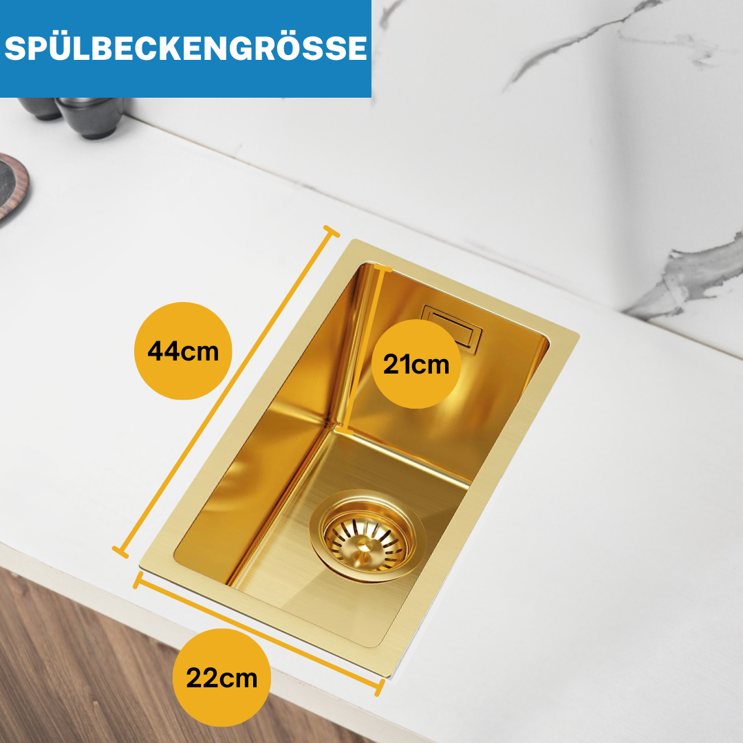- ✅Leicht zu reinigen:Die goldene PVD-Beschichtung ist schmutzabweisend, sodass die Spüle leicht sauber zu halten ist.