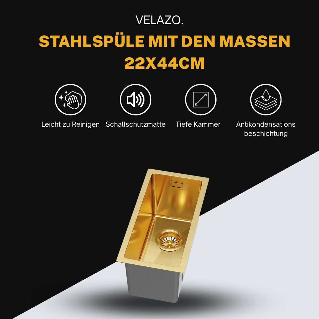 Kleines goldenes Küchenspülbecken 22 x 44 cm von Velazo.